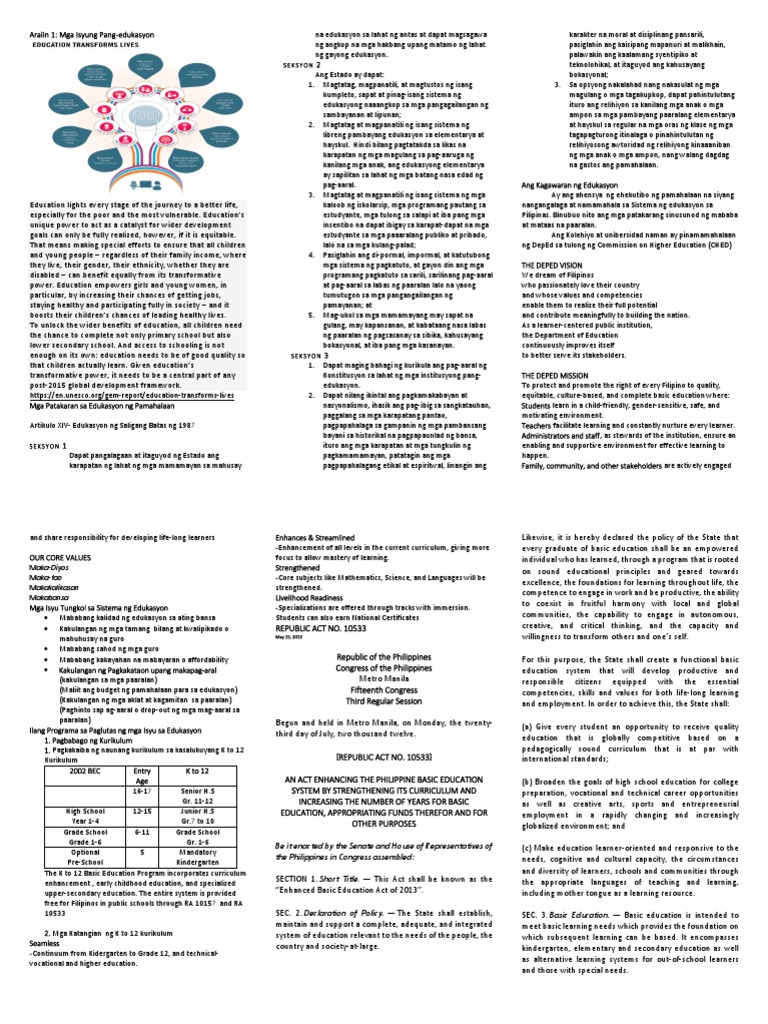 1 Mediabased Arts and Design in the Philippines. Pamantayang Pangnilalaman Ang mga mag-aaral ay may pag-unawa sa kahalagahan ng edukasyon tungo sa ikabubuti ng kalidad ng pamumuhay ng tao pagpapanatili ng kaayusang panlipunan at. Mga Isyung Pang-Edukasyon at Pansibiko at.