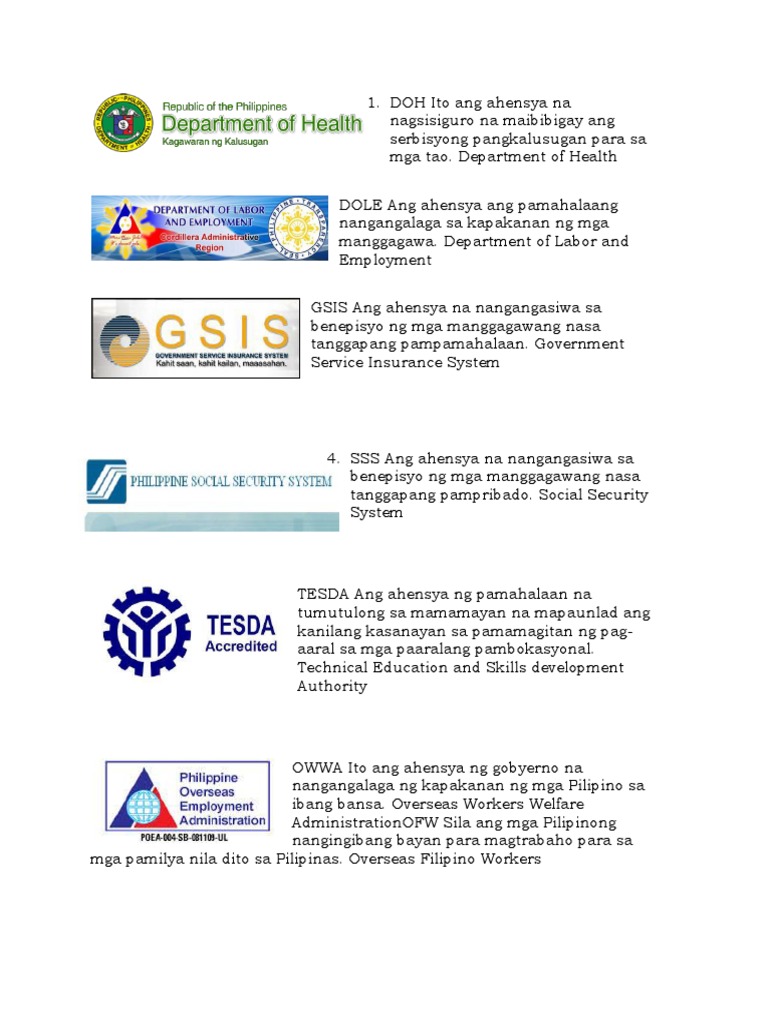 Mga Tungkulin At Kagawaran Ng Pilipinas