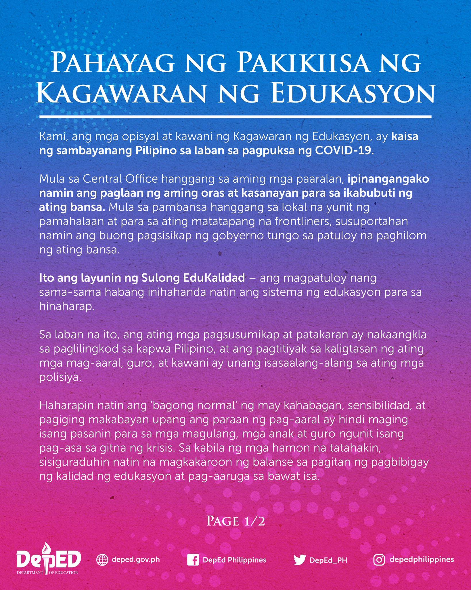 Deped On Twitter Pahayag Ng Pakikiisa Ng Kagawaran Ng Edukasyon Ibahagi N Yo Sa Amin Ang Inyong Panata Para Sa Edukasyon At Magsilbi Tayong Inspirasyon Sa Kapwa Natin Pilipino Upang Magbigay Din Ng